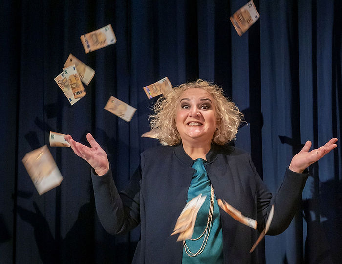 Uno spettacolo comico sull’ultimo vero argomento tabù, che tocca tutti in maniera trasversale: il denaro e il nostro rapporto con esso, dalla quotidianità spicciola a come condiziona la nostra vita. Dalla gestione familiare dei conti alle criptovalute, passando dalla storia delle prime monete in terracotta dei popoli antichi fino a paypal. La moneta vera, falsa, coniata, scritta, scarabocchiata, strappata, rattoppata con lo scotch, l’inflazione, lo spread, il tag, il taeg, gli eurobond, chi sono questi sconosciuti? Dei soldi se ne hanno mai abbastanza ma, se ti mancano non sai come chiederli e, se ne hai, non sai più dove metterli o cosa farci. Da sotto al materasso, ai fondi di investimento, dai piani d’accumulo ai depositi di monetine di Paperon di Paperoni… Uno spettacolo esilarante e coinvolgente, scritto con la consulenza di una banking trainer, per ridere di un intero mondo finanziario in cui non capiamo nulla o quasi e ci affidiamo ad altri, ma sempre ignari, tenendo le dita di una mano incrociate e l’altra a cercare scongiuri sotto la cintola.